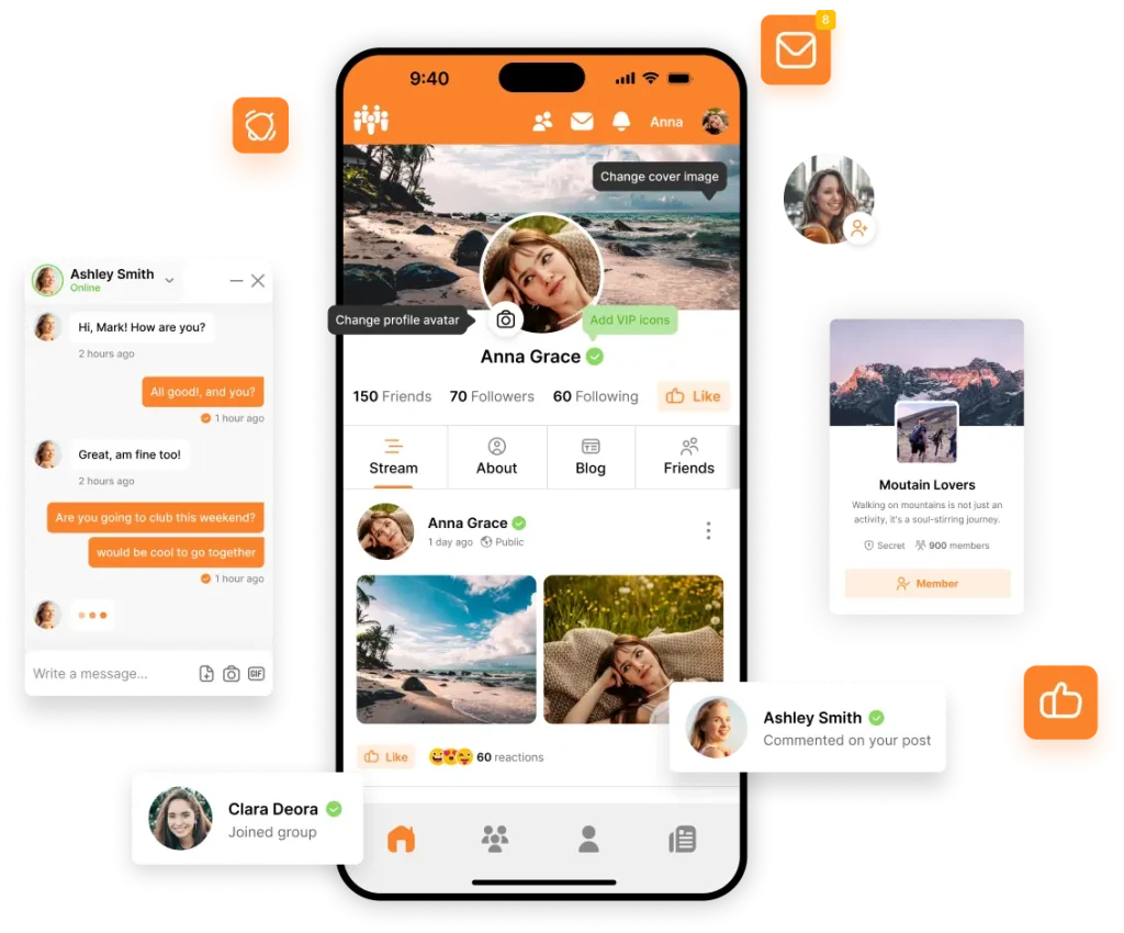 Users can send and accept friend requests, curate their friend lists, and engage in private messaging with their network. Follow feature enables friends to stay updated on their activities and updates.